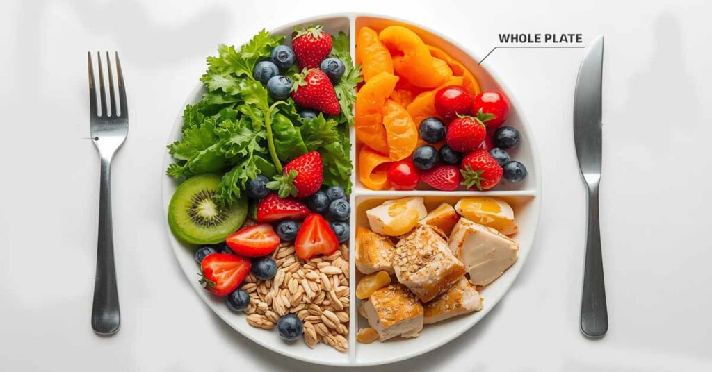 When you focus on eating healthily instead of fast fixes, losing weight gets simpler. Choose actual food, stick to a routine, and use the balanced plate method. You can get large results by taking small measures every day.